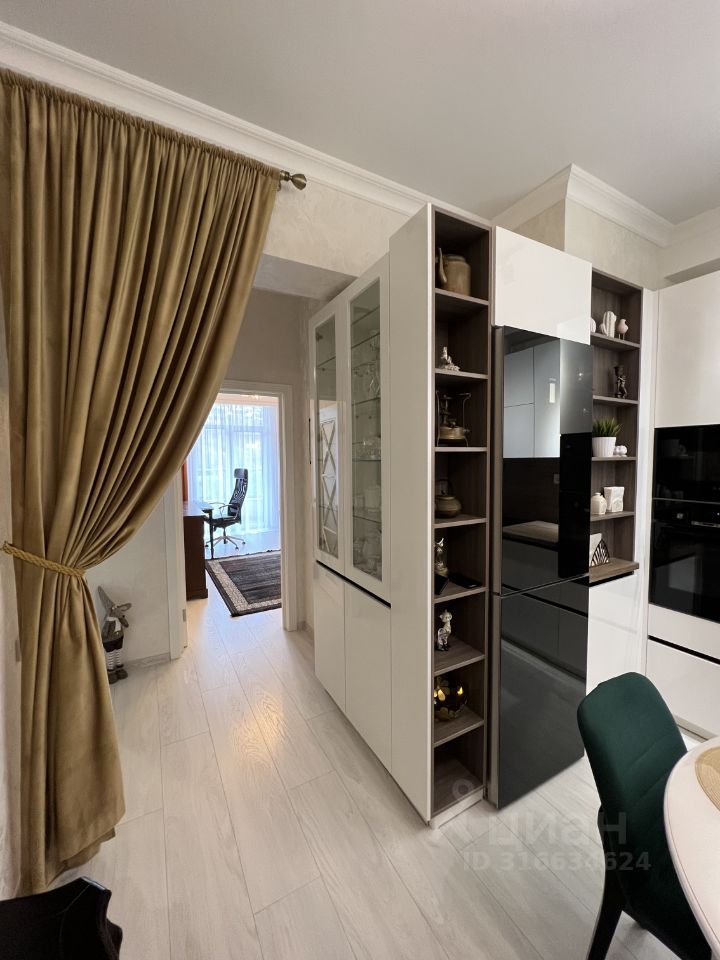 Планировка: 2 изолированные комнаты, санузел совмещённый, кухня-гостиная, места для хранения одежды, гардеробная комната.