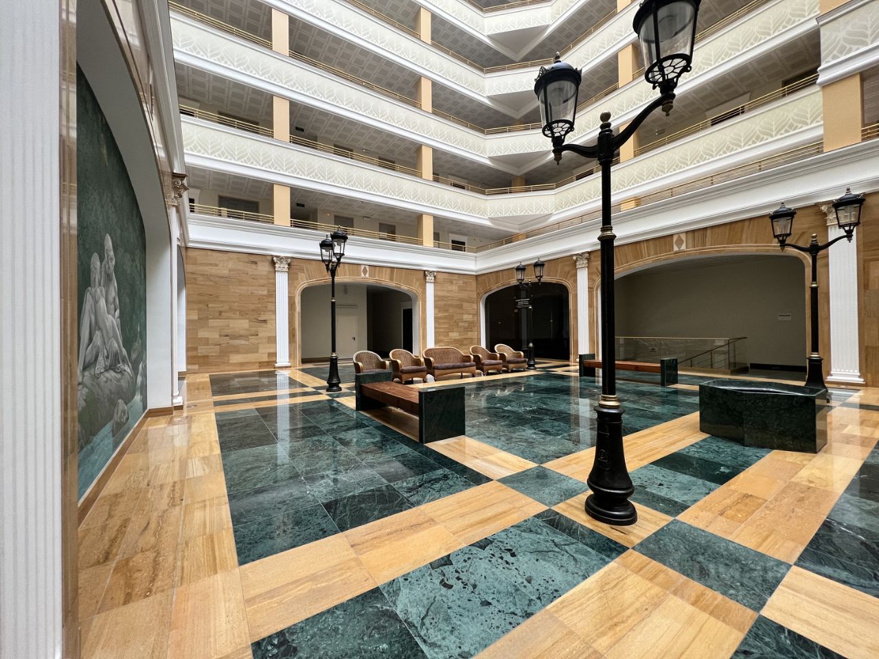Дом, в котором находится квартира, оборудована атриумом, внутрь всегда проникает солнечный свет.