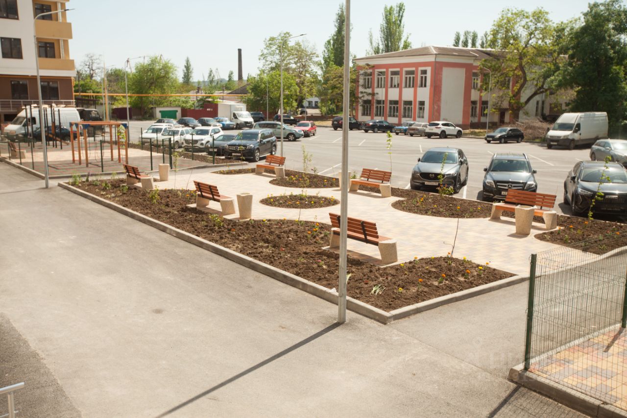 Пешеходные дорожки для прогулок и детская площадка для самых маленьких жильцов.