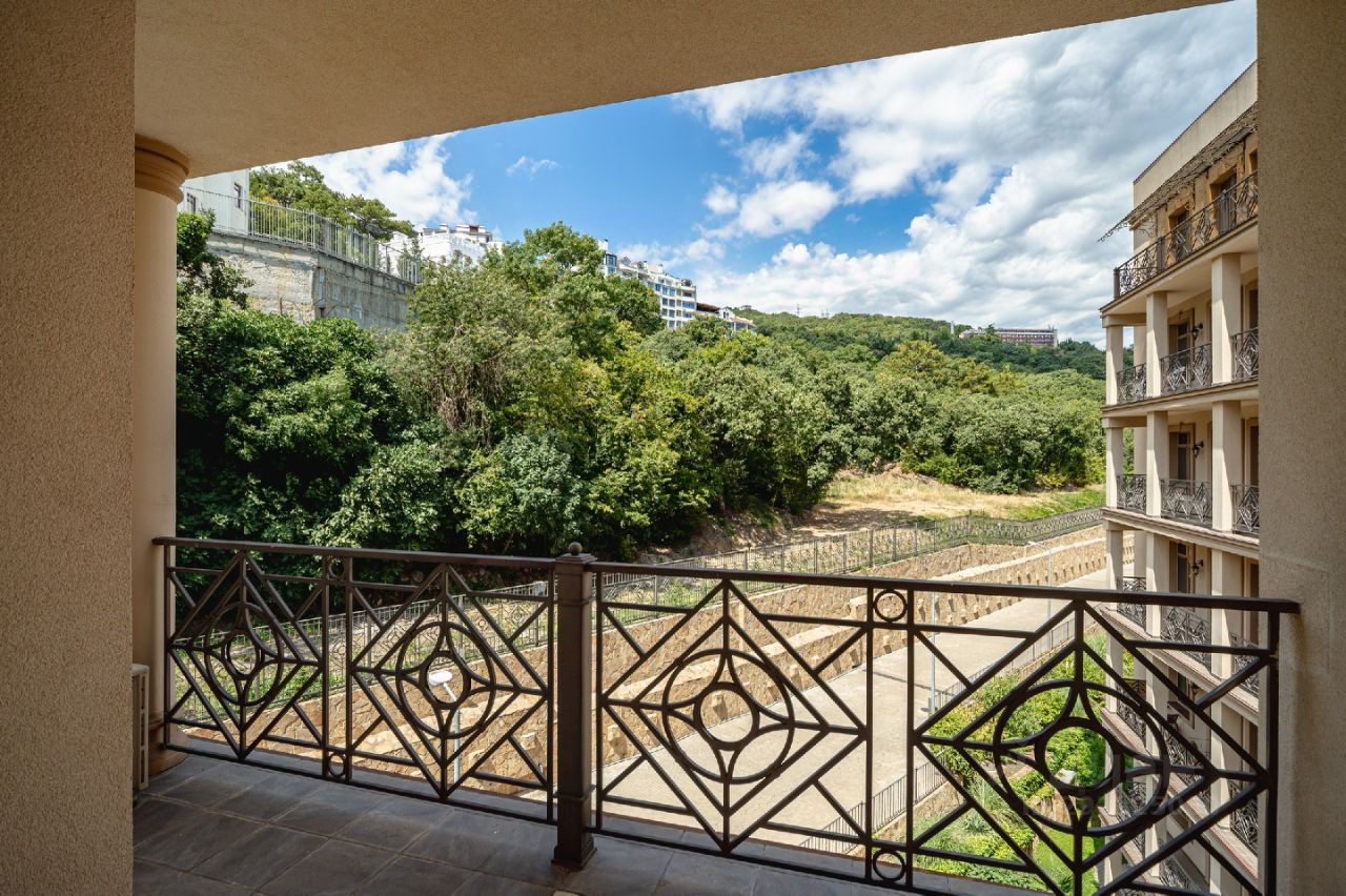 На территории комплекса 3 открытых бассейна, ресторан, собственный СПА-центр с крытым бассейном, сауна, русская баня, хамам, тренажерный зал. До пляжа 500 метров по закрытой охраняемой территории соседнего санатория