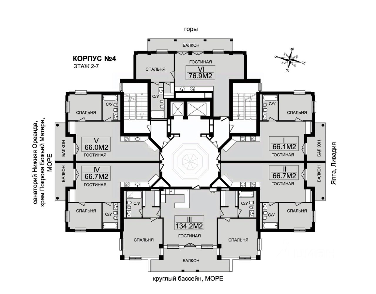 На территории комплекса 3 открытых бассейна, ресторан, собственный СПА-центр с крытым бассейном, сауна, русская баня, хамам, тренажерный зал. До пляжа 500 метров по закрытой охраняемой территории соседнего санатория