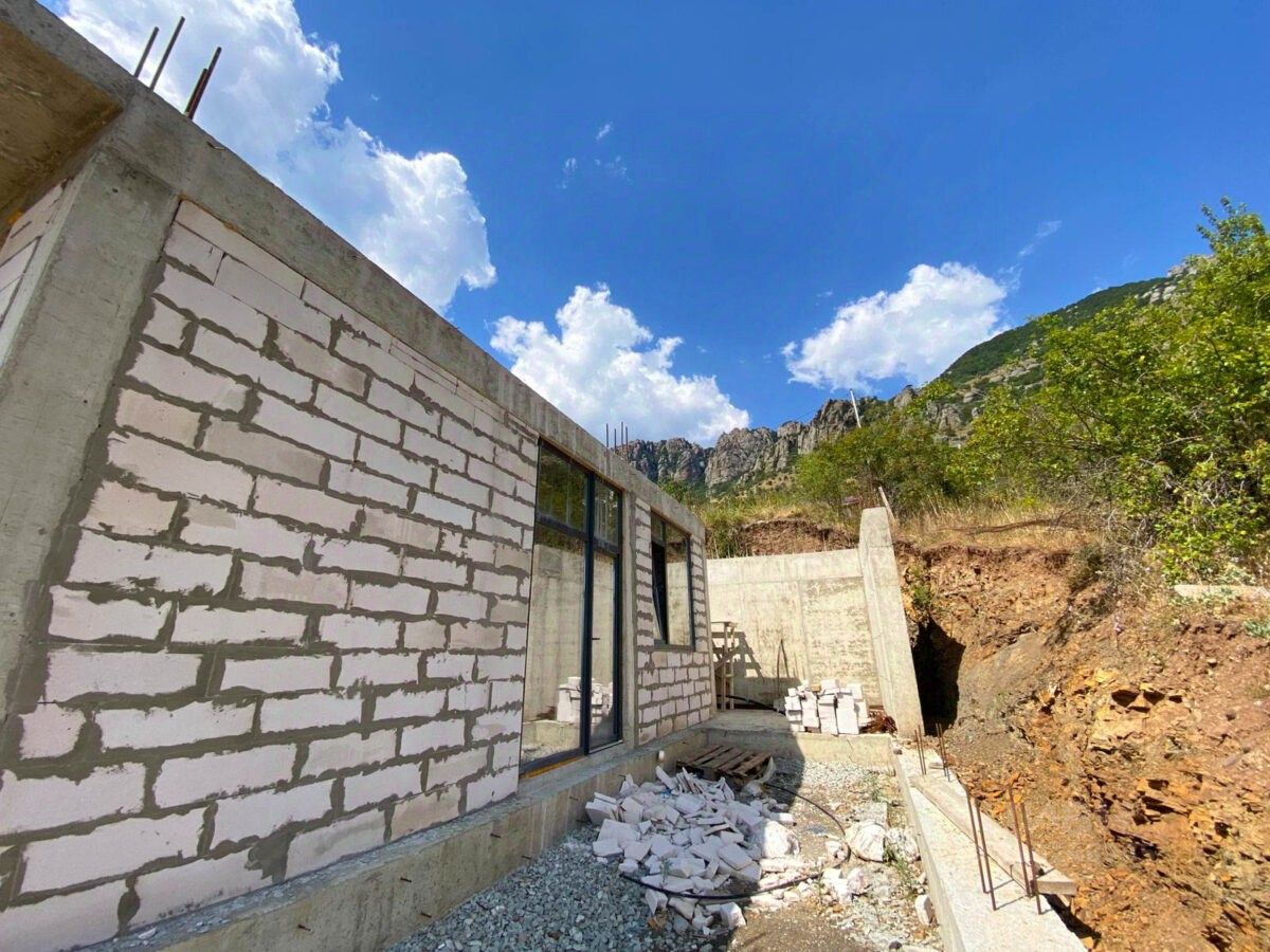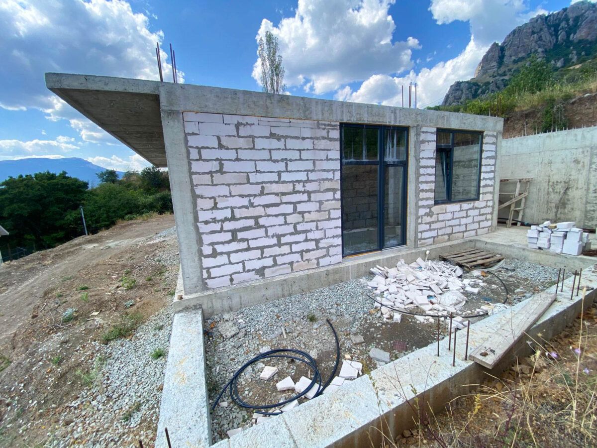 Коммуникации: электричество 15 кВт, водоснабжение центральное, газоснабжение на границе. Локация: до Алушты 12 км, до центра поселка 800 м, до магазинов и остановки 800 м, до школы 1,2 км.