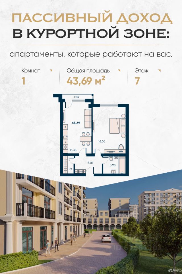 Апартаменты у моря Новая Керкинтида с гарантированной доходностью и рассрочкой. Надёжный способ сохранить капитал и получать пассивный доход — курортная недвижимость на первой линии у моря. Апарт-комплекс в экологически чистом районе Евпатории — это инвестиция, которая работает круглый год. Главные преимущества: Первая береговая линия Гарантированный пассивный доход Возможность отдыха в собственных апартаментах Рассрочка до 90% — без переплат Безопасная сделка через эскроу-счёт Почему это выгодно: Район с высоким спросом на аренду — Евпатория стабильно входит в топ направлений семейного и оздоровительного туризма. Цены на курортную недвижимость в Крыму растут — вы успеваете купить до следующей волны удорожания. Формат ''отдых плюс доход'' — апартаменты можно сдавать через управляющую компанию или использовать самостоятельно. Полностью готовая среда — магазины, кафе, рестораны, прогулочные зоны, ландшафтный парк, двор без машин, спортивные и детские площадки. Вид на море уже с 4 этажа — ощущение курорта не только в инфраструктуре, но и в каждом окне. Для спокойной старости или будущего семьи: Комплекс подойдёт тем, кто хочет иметь надёжный резерв на случай любых сценариев — для себя, детей, внуков или просто как подушку безопасности. Срок сдачи: IV квартал 2026 года. Покупка без скрытых комиссий, с понятной рассрочкой и прозрачными условиями.
