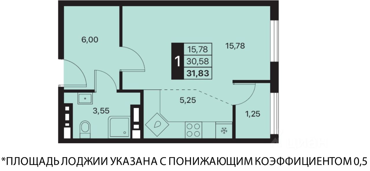 Общая площадь31,83 м2