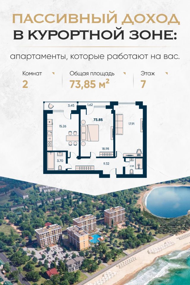 Апартаменты у моря Новая Керкинтида с гарантированной доходностью и рассрочкой. Надёжный способ сохранить капитал и получать пассивный доход — курортная недвижимость на первой линии у моря. Апарт-комплекс в экологически чистом районе Евпатории — это инвестиция, которая работает круглый год. Главные преимущества: Первая береговая линия Гарантированный пассивный доход Возможность отдыха в собственных апартаментах Рассрочка до 90% — без переплат Безопасная сделка через эскроу-счёт Почему это выгодно: Район с высоким спросом на аренду — Евпатория стабильно входит в топ направлений семейного и оздоровительного туризма. Цены на курортную недвижимость в Крыму растут — вы успеваете купить до следующей волны удорожания. Формат ''отдых плюс доход'' — апартаменты можно сдавать через управляющую компанию или использовать самостоятельно. Полностью готовая среда — магазины, кафе, рестораны, прогулочные зоны, ландшафтный парк, двор без машин, спортивные и детские площадки. Вид на море уже с 4 этажа — ощущение курорта не только в инфраструктуре, но и в каждом окне. Для спокойной старости или будущего семьи: Комплекс подойдёт тем, кто хочет иметь надёжный резерв на случай любых сценариев — для себя, детей, внуков или просто как подушку безопасности. Срок сдачи: IV квартал 2026 года. Покупка без скрытых комиссий, с понятной рассрочкой и прозрачными условиями.