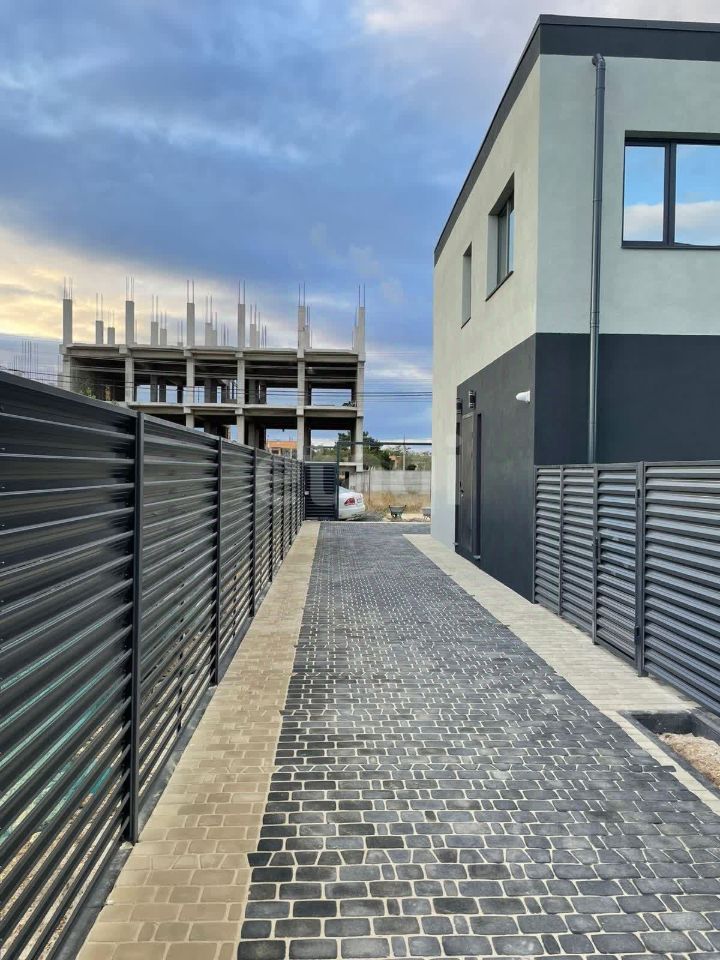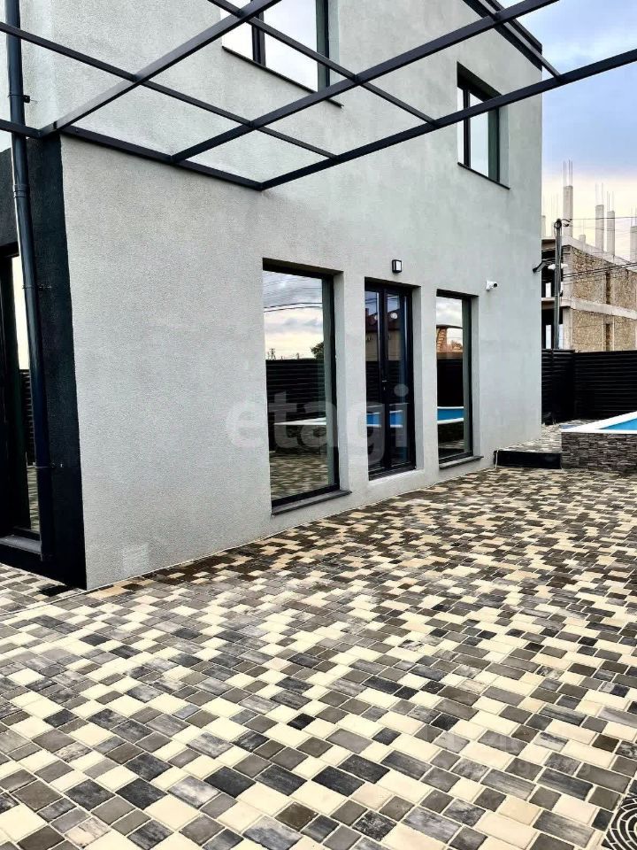 В доме пять просторных комнат, кухня с большой столовой, смежный санузел. В доме есть мансарда на которой можно оборудовать место для отдыха. В доме два выхода. Во дворе расположен бассейн. Весь двор уложен уличной плиткой. На территории есть бассейн.