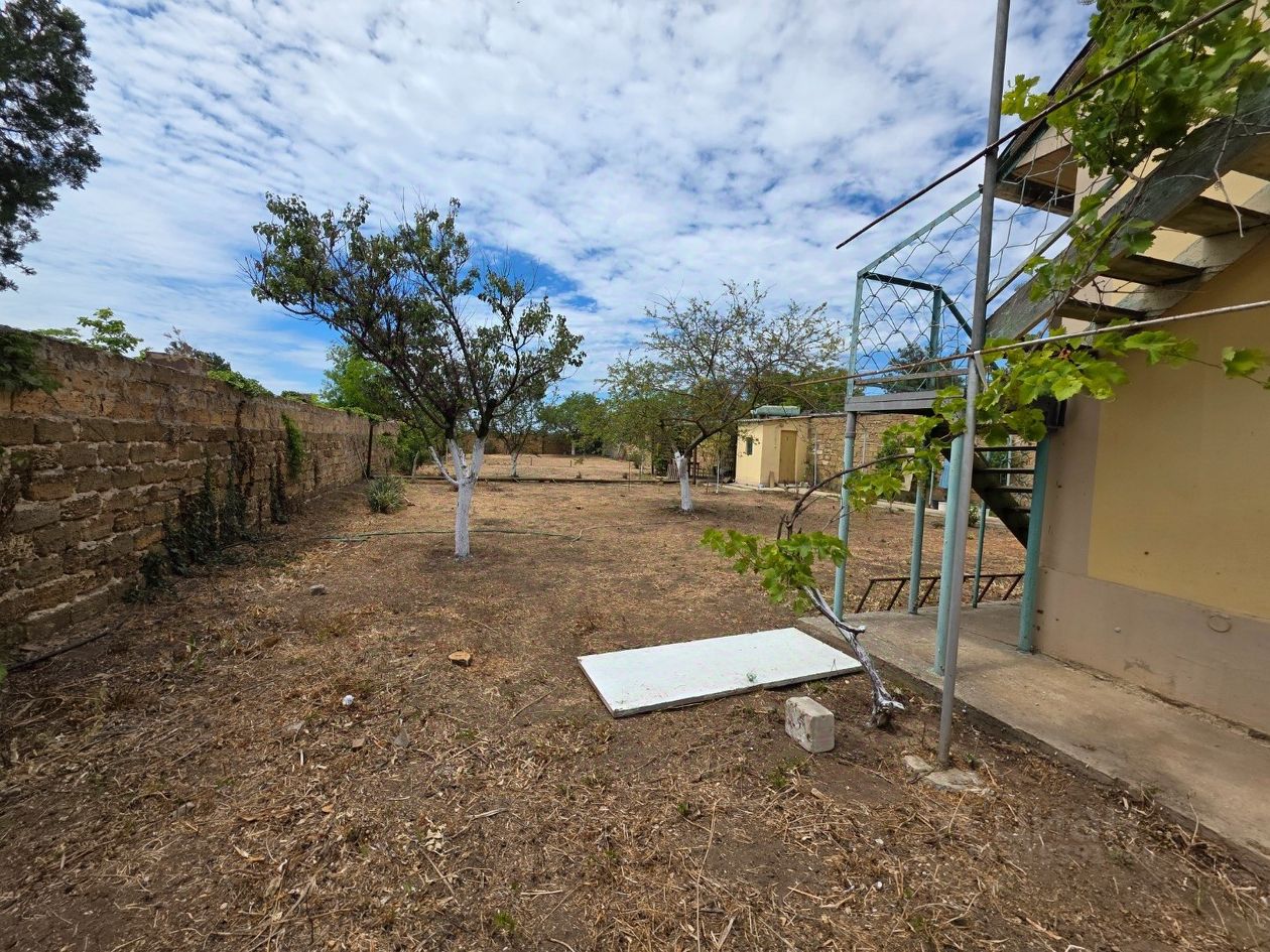 На участок два въезда с двух улиц. Вокруг участка двухметровый каменный забор из камня ракушняк. На участке есть летний душ с накопительным баком и санузел.
