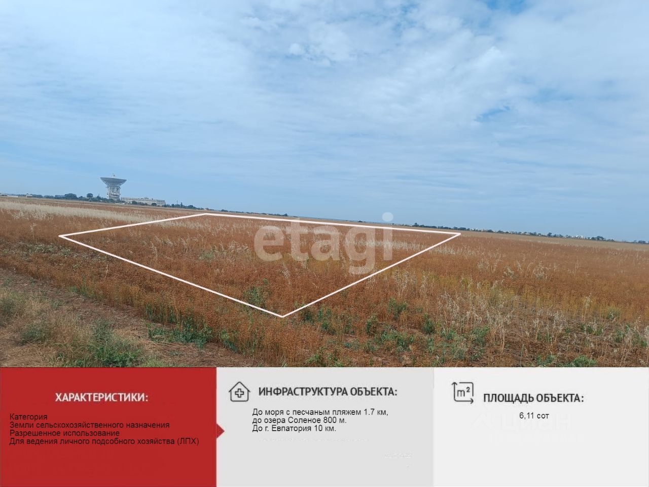 Продам участок в Молочненском сельском поселении в шаговой доступности от морского побережья, площадью 6,11 соток.