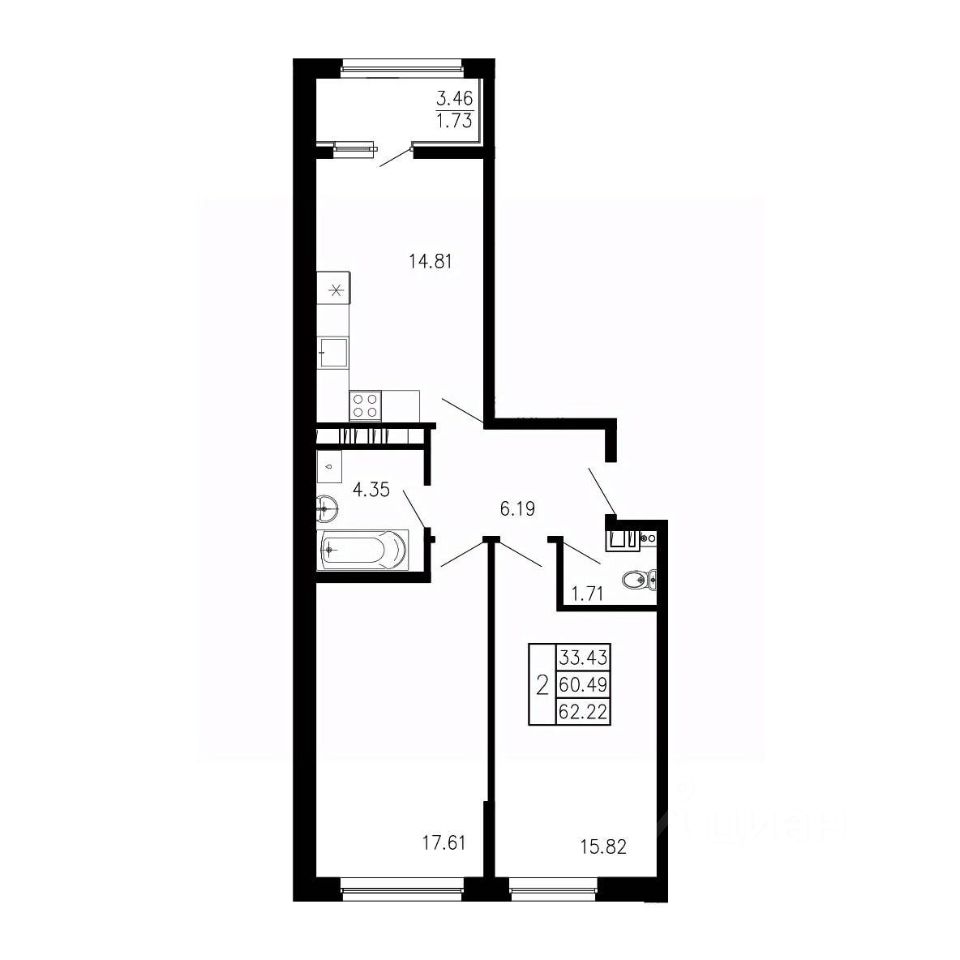 продам 2-к, Приморский11 821 800 ₽