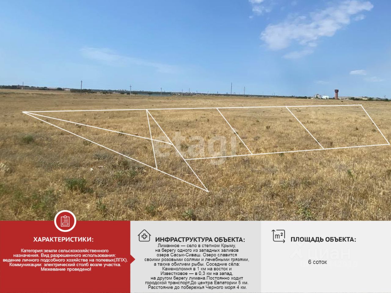 Продается участок в с. Лиманном Суворовского сельского поселения Сакского района, общей площадью 6 соток.