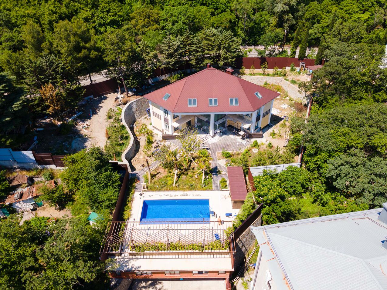 Продажа комфортабельного дома в живописнейшем районе Большой Ялты! Дом расположен в Ливадии, в непосредственной близости к Ливадийскому дворцово-парковому комплексу. Площадь участка 20 соток. Проект ландшафтного дизайна. Полностью готов бассейн с подогревом и лаунж-зоной. Дом общей площадью 600 м2. Вилла располагает лифтом фирмы OTIS для Вашего удобства. Цокольный этаж: технические помещения, котельная ,пространство для хаммама и сауны , зал для тренировок. Первый этаж: Просторная гостиная с панорамным остеклением Две гостевые спальни, каждая с собственным санузлом Второй этаж : Три основные спальни ,каждая со своим сан.узлом Третий этаж : большое помещение свободного назначения и два сан. Строительная готовность: предчистовая отделка.