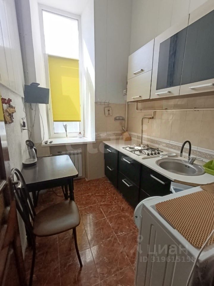 Квартира находится на втором этаже трехэтажного кирпичного дома 1908 года постройки. Общая площадь составляет 56.6 кв. м, из которых 7 кв. м отведено под кухню. Высокие потолки — 4.8 метра — создают ощущение простора и свободы.