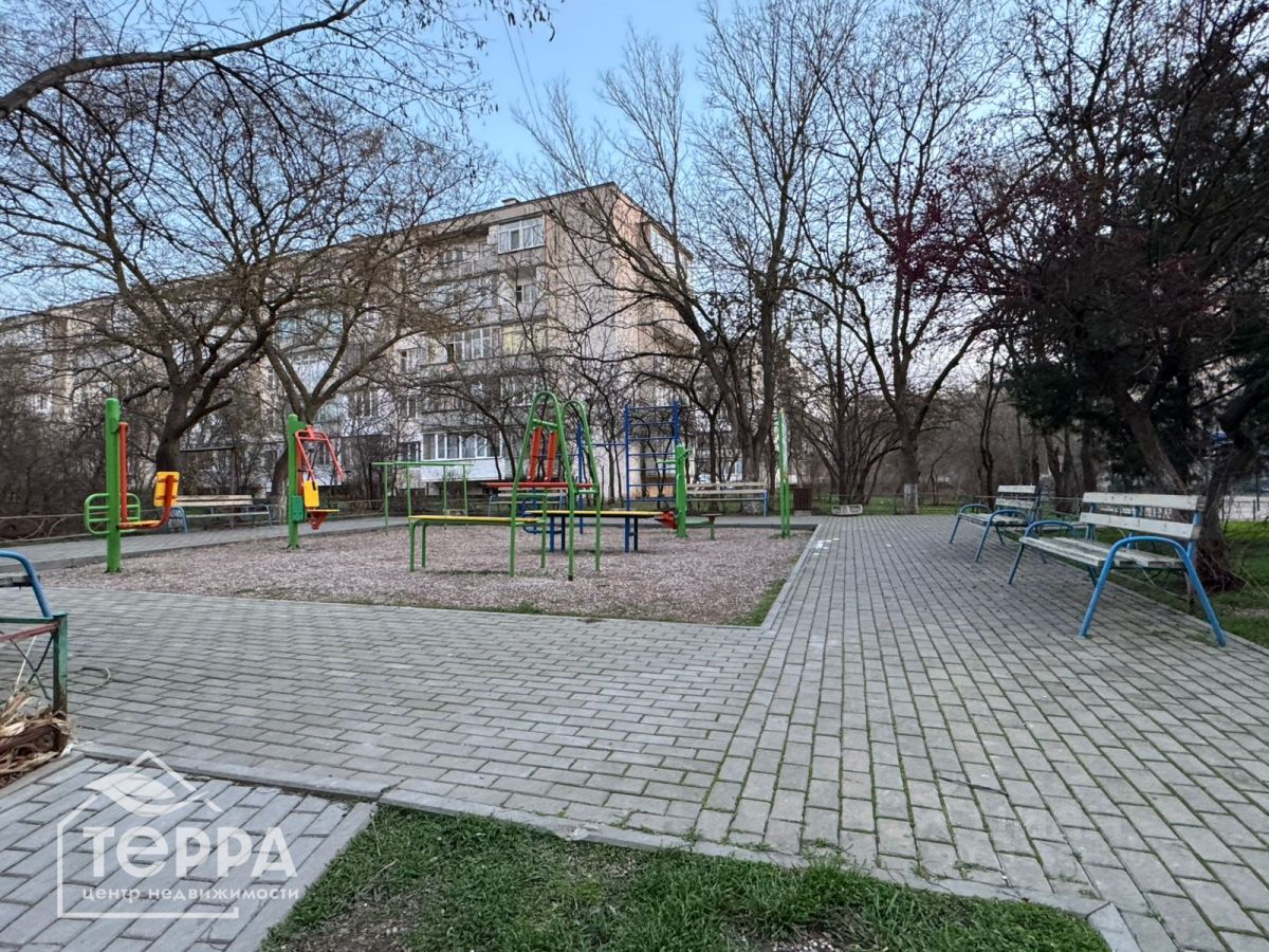 Спокойный район с зелеными зонами, парковками и детскими площадками.