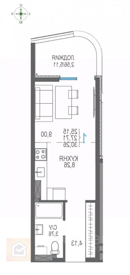 Общая площадь30,26 м2