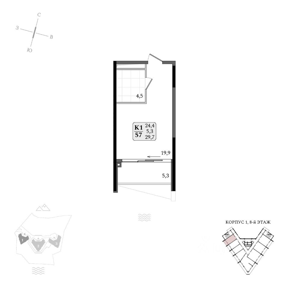 Общая площадь29,7 м2