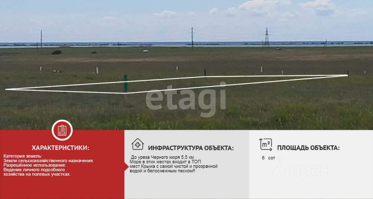 До уреза Черного моря 5,5 км. Море в этих местах входит в ТОП мест Крыма с самой чистой и прозрачной водой и белоснежным песком!!! до Ойбурского озера 2 км. Озеро Ойбурское - это ''МЁРТВОЕ МОРЕ'' Крыма С ЦЕЛЕБНЫМИ ЧЁРНЫМИ И ГОЛУБЫМИ ГРЯЗЯМИ !!! от г. Евпатория 21.6 км, до пгт Мирный 7 км, до с. Штормовое 2,5 км. Самое выгодное предложение в данном массиве.