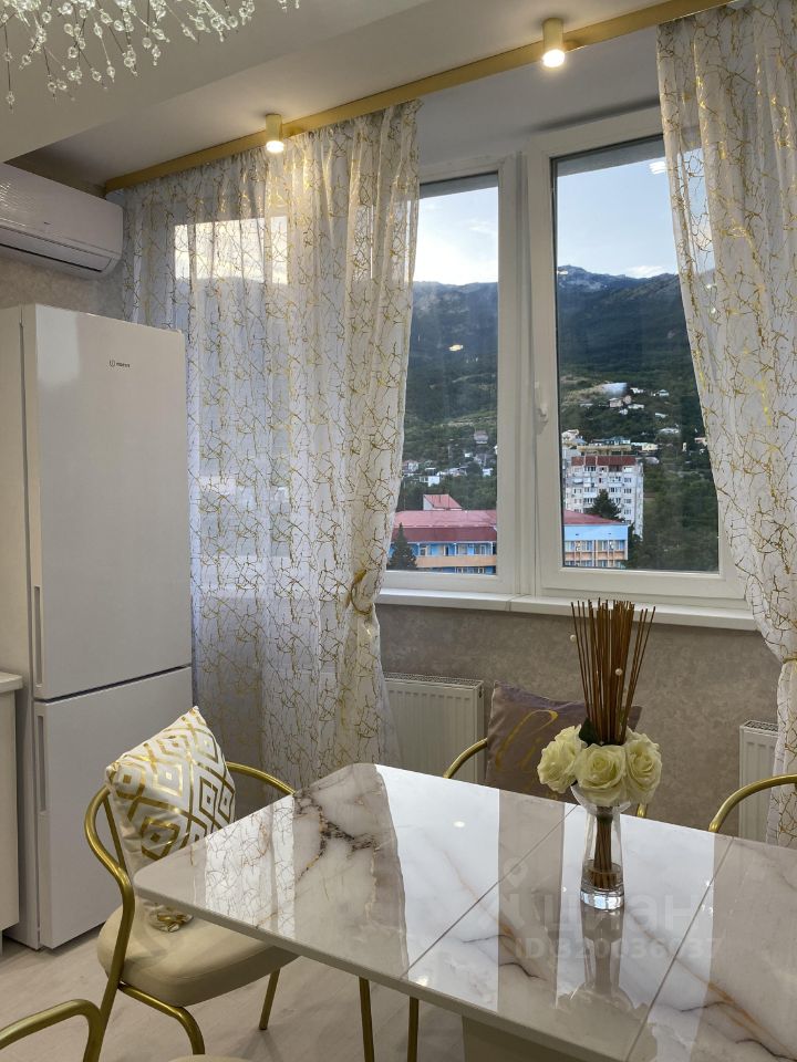 Собственник! Продаю шикарную квартиру с видом на горы Ай Петри! Квартира находится в г. Ялте в современном доме комфорт класса ЖК Континент. На большой огороженной охраняемой территории комплекса имеется детская площадка, зона барбекю, парковка для автомобилей, беседки. Квартира общей площадью 69 кв.м. находится на 15 этаже и состоит из двух комнат, отдельной кухни, большой гардеробной, где предусмотрено много места для хранения, в том числе чемоданов и детских приспособлений. В квартире выполнен стильный качественный ремонт в светлых и золотых тонах. Просторная кухня с шикарным видом на горы оборудована всей необходимой техникой (холодильником, посудомоечной машиной, варочной поверхностью, встроенными микроволновой печью и духовкой).