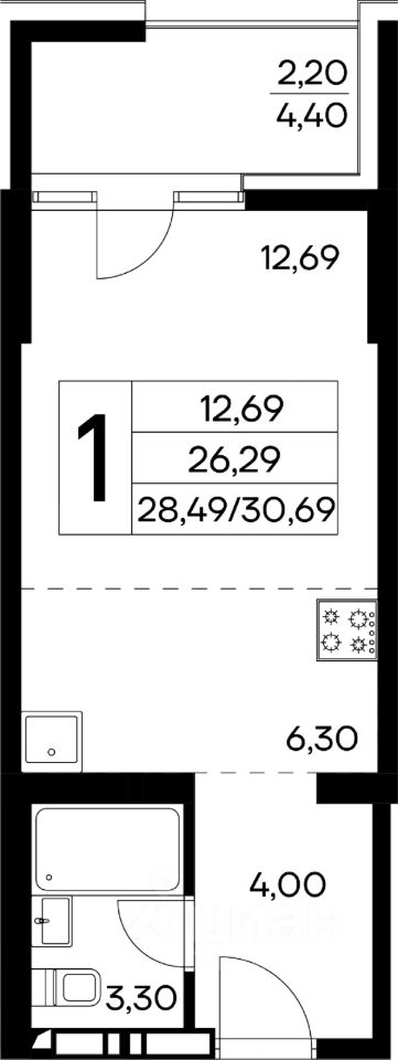 Общая площадь30,69 м2
