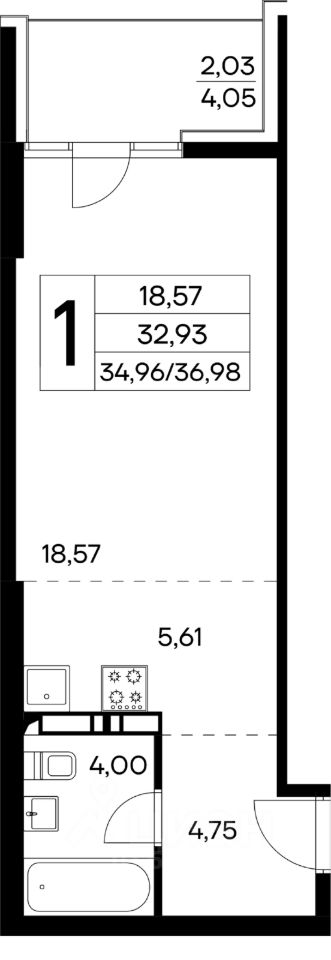 Общая площадь36,98 м2