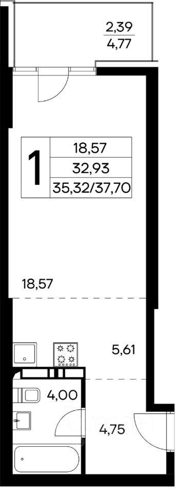 Общая площадь37,7 м2