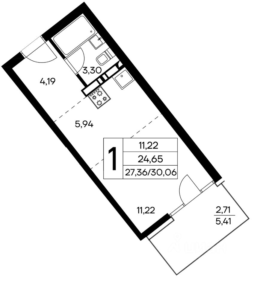 Общая площадь30,54 м2