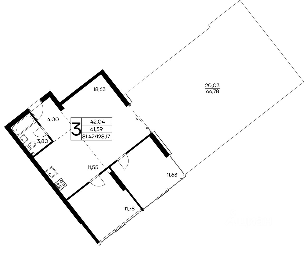 Общая площадь128,17 м2