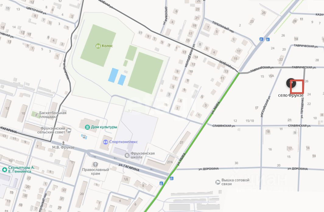 Участок площадью 10 соток под ИЖС расположен в поселке Фрунзе и представляет собой ровную, чистую территорию правильной формы без строений, что позволяет сразу приступить к строительству дома по индивидуальному проекту.
