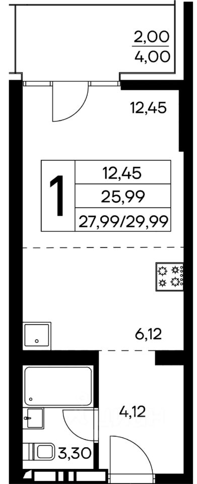 Общая площадь29,99 м2
