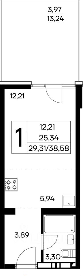 продам 1-к, Семидворье12 272 000 ₽