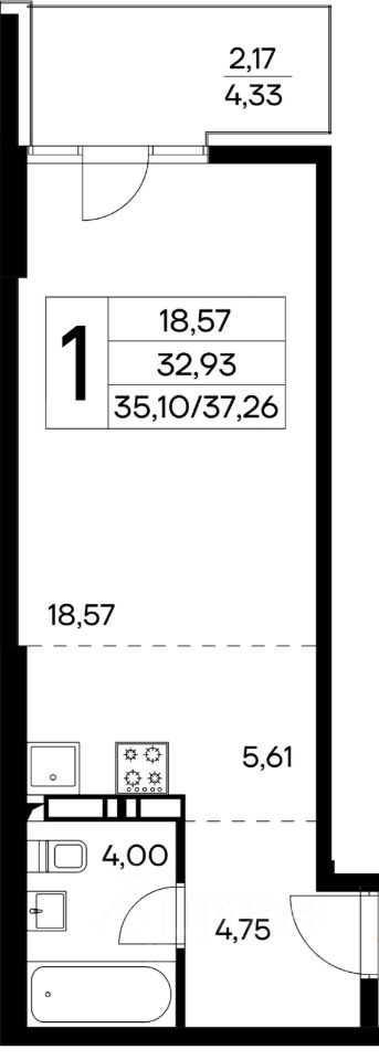 Общая площадь37,26 м2