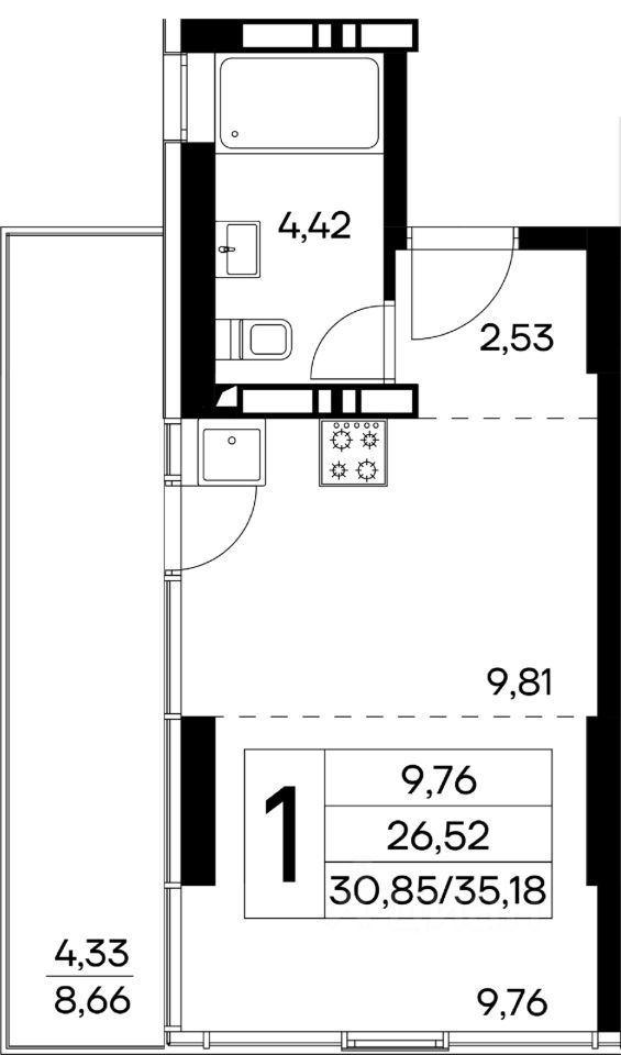 продам 1-к, Семидворье11 941 650 ₽