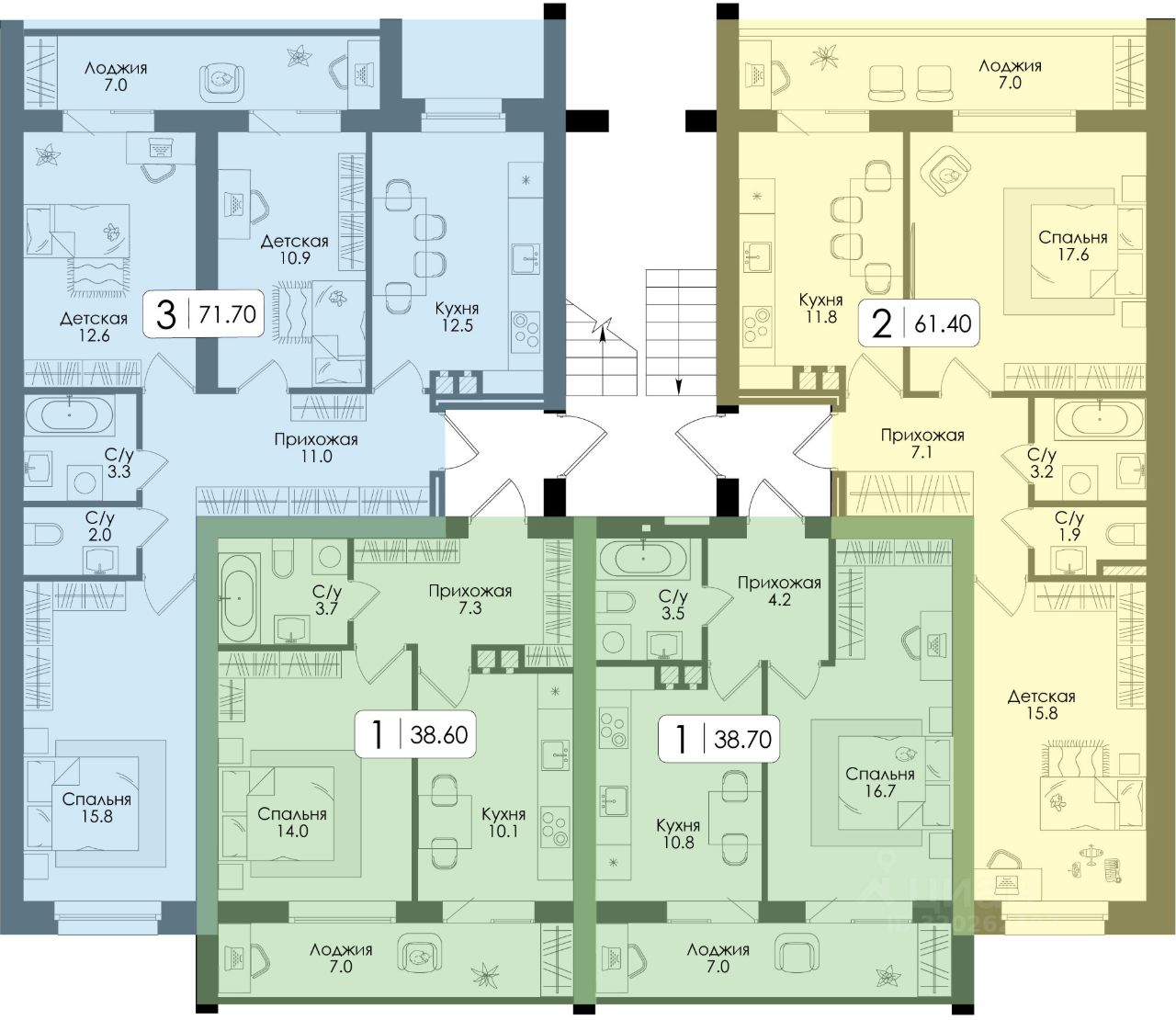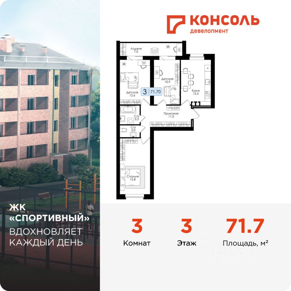 Продается трехкомнатная квартира 28 с черновой отделкой в ЖК ''Спортивный'' площадью 71.7 на 3 этаже от застройщика Консоль девелопмент.