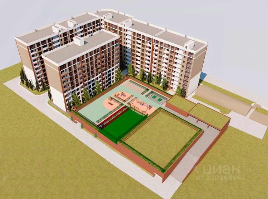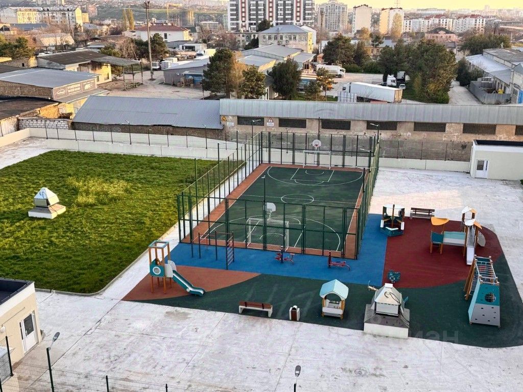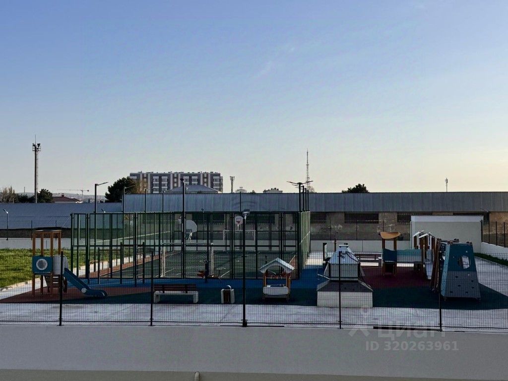 В развивающемся микрорайоне благоустроенная придомовая территория, детская и спортивная площадка, большая парковка.