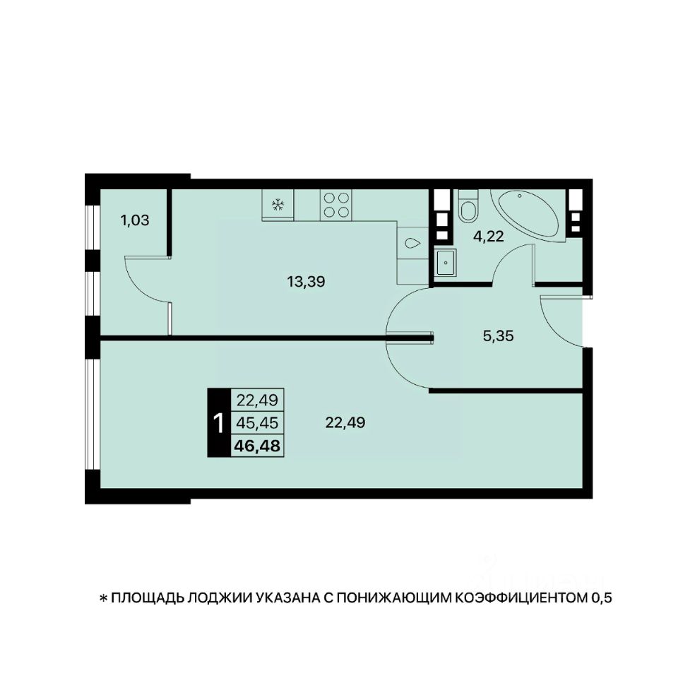 В продаже квартира 46,48 м2 в эко-квартале Партенит Парк!