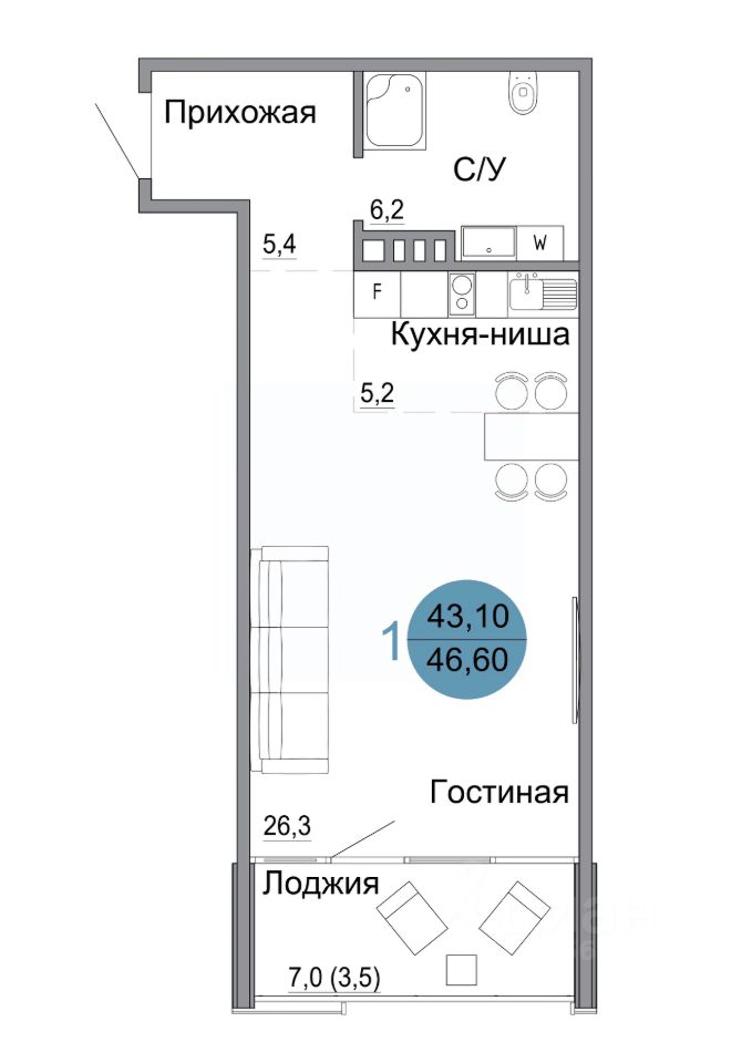 Общая площадь46,6 м2