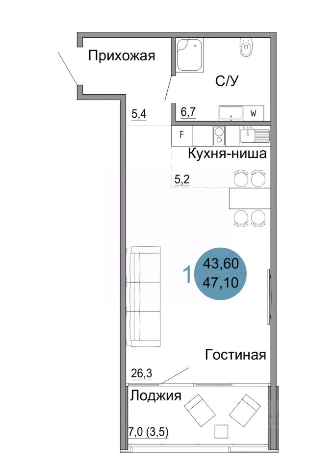 Общая площадь47,1 м2