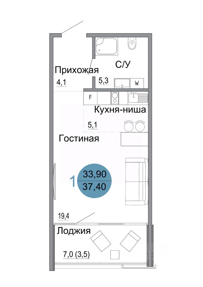 Общая площадь37,4 м2