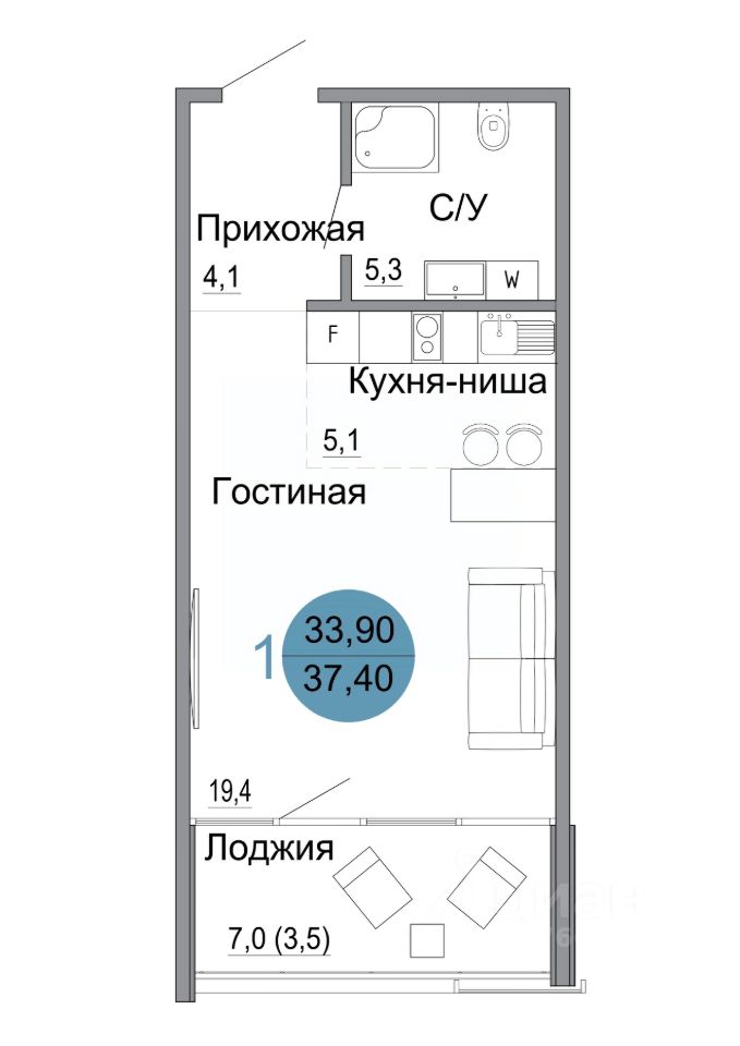Общая площадь37,4 м2