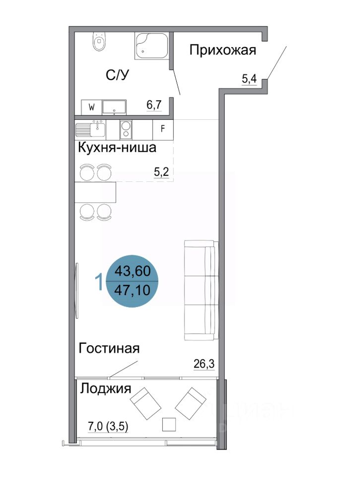 Общая площадь47,1 м2