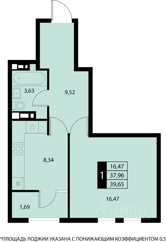 В продаже квартира 39,65 м2 в эко-квартале Партенит Парк!