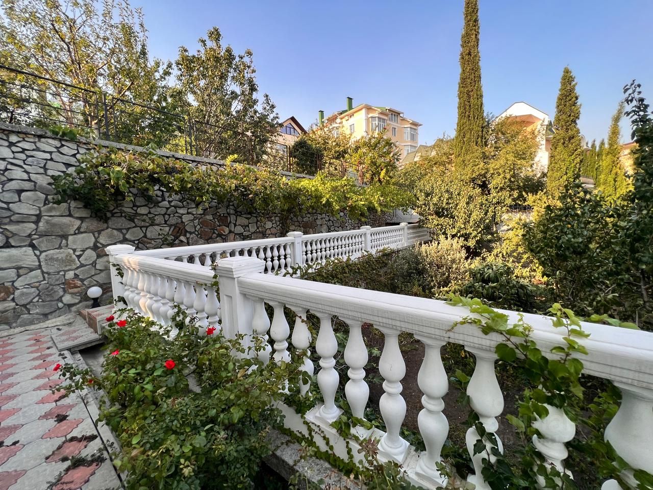Жилой дом в коттеджном посёлке рядом с Мисхорским парком в Кореизе. Трехэтажный дом общей площадью 215 кв.м.+59 кв.м. гараж для двух авто. Планировка дома включает в себя: прихожую, кухню-гостиную с выходом на террасу и к бассейну, 5 комнат с выходом на балконы и террасы, 4 сан узла. Земельный участок 12 соток, на участке выполнено ландшафтное озеленение, разбит плодоносящий фруктовый сад, беседка, мангал, гараж для авто, плавательный бассейн 8 на 5 метров с зоной загара. Хороший вид на море и горные вершины Ай-Петри. Все городские сети, асфальтированный подъезд. Охраняемый коттеджны посёлок. До Мисхорского парка 5 минут пешком до пляжей и набережной 10 минут пешком, до Воронцовского парка в Алупке 15 минут пешком, до Ялты 20 минут на авто.