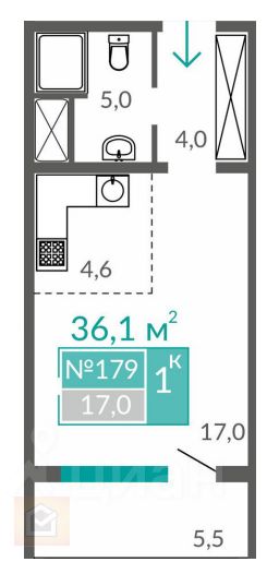Ваша новая квартира с изолированной планировкой общей площадью 36.1 м² и высотой потолков 3 м создаст ощущение простора и уюта.