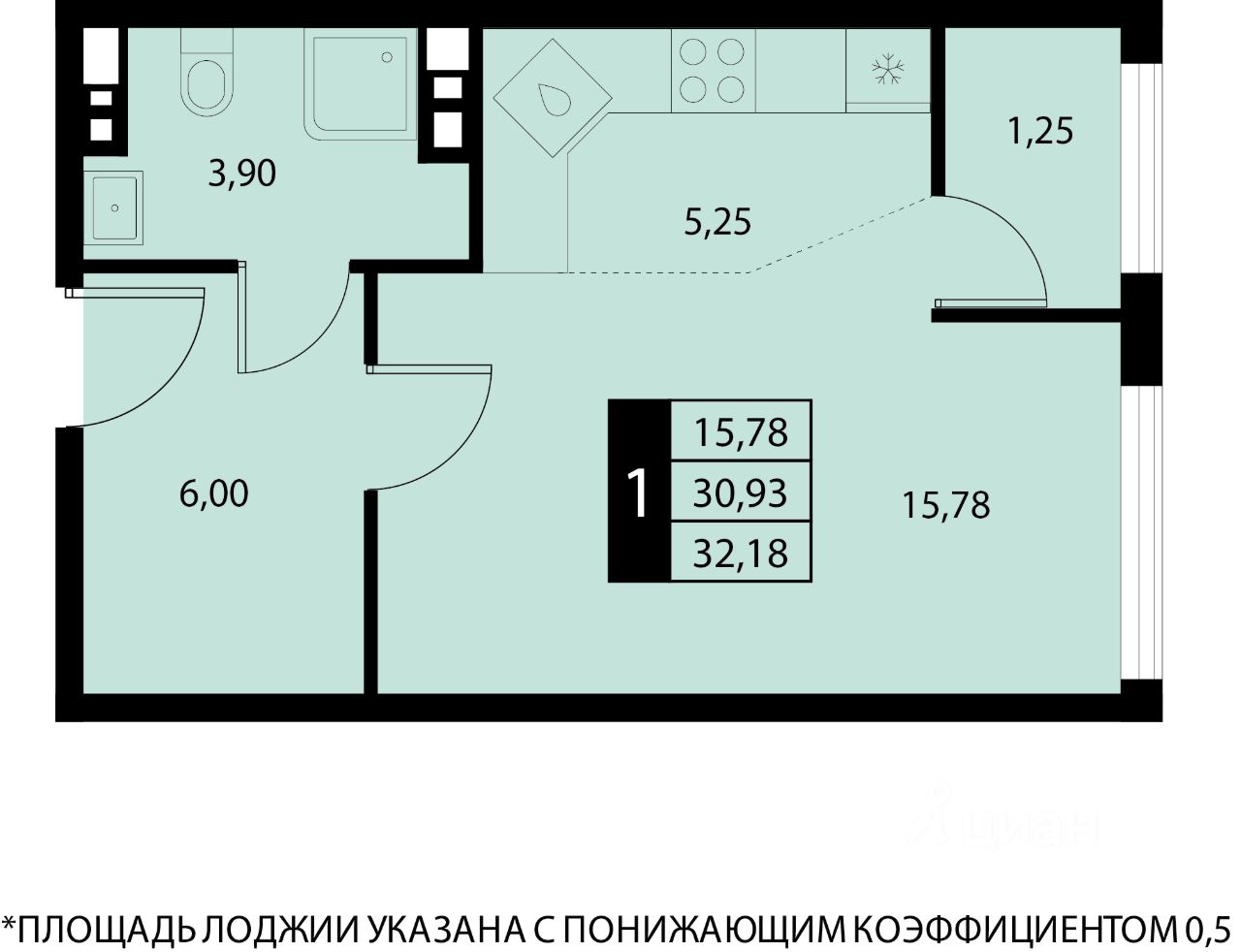 Общая площадь32,18 м2