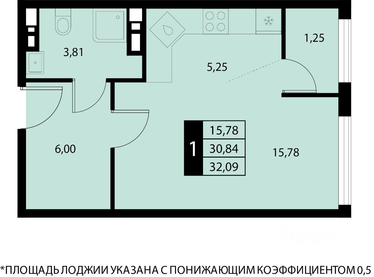 Общая площадь32,09 м2