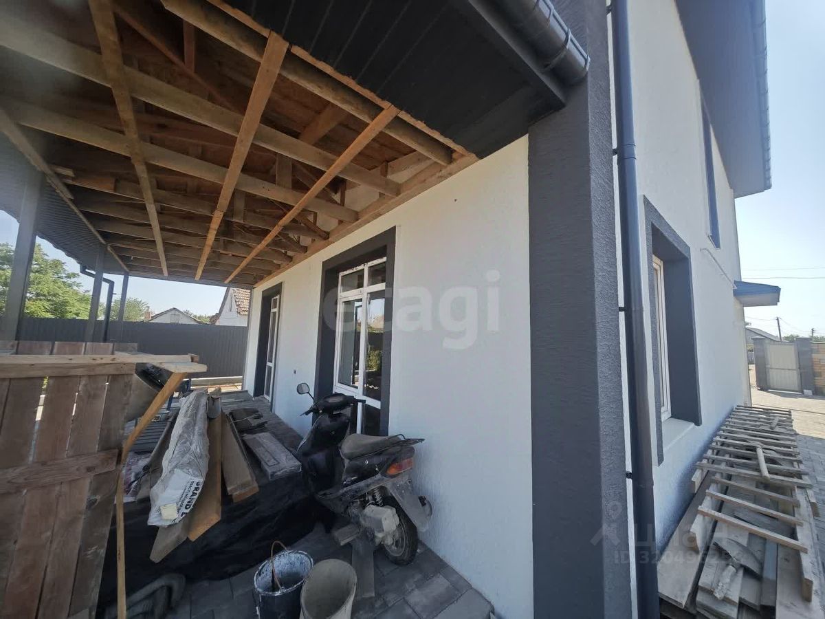 Двухэтажный дом 2024 года постройки площадью 185,6 кв. м расположен в селе Михайловка Сакского района Республики Крым на участке 6 соток. Территория огорожена забором по периметру, двор вымощен тротуарной плиткой, установлены откатные ворота с дистанционным управлением. На первом этаже расположены просторная кухня-гостиная, спальня, санузел и котельная. На второй этаж ведет монолитная лестница с деревянной обшивкой, где находятся три спальни и еще один санузел. Дополнительным преимуществом является большая терраса. Крыша покрыта мягкой кровлей с утеплением минеральной ватой, фасад также утеплен и отделан караедом.