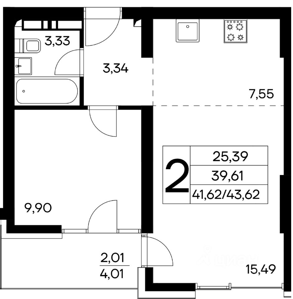 Общая площадь43,62 м2