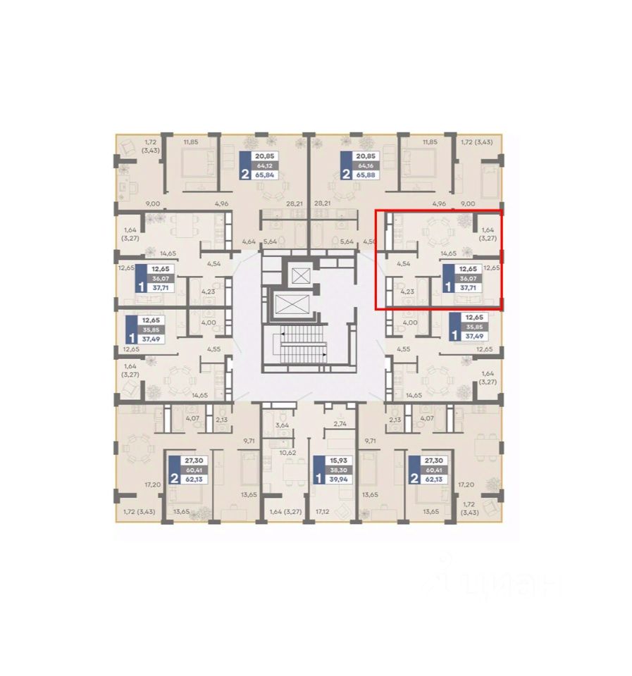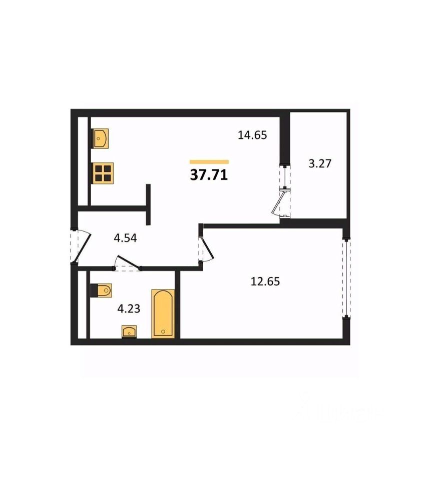 Общая площадь37,71 м2