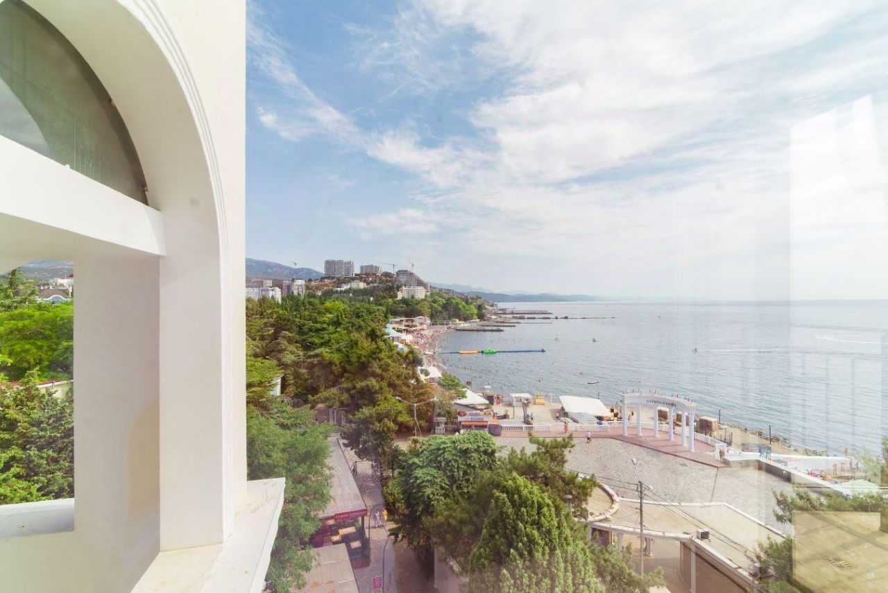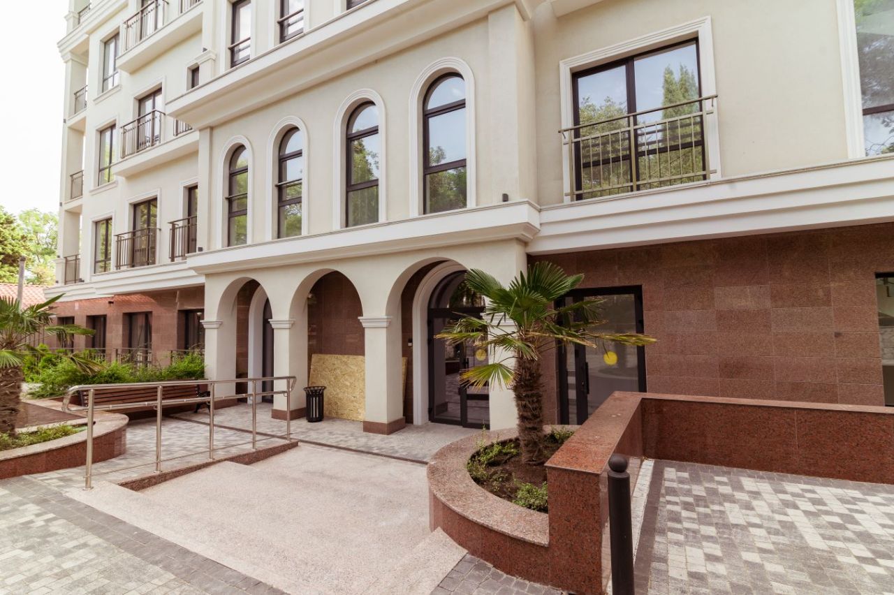 В продаже 2-комнатные апартаменты в комплексе Чайка. Общая площадь — 43,6 кв.м., расположены на 5м этаже. Из окон открывается шикарный вид на море. Апарт-комплекс находится непосредственно на центральной набережной Алушты (ул. Ленина, д.17). Сдан в эксплуатацию в октябре 2024 г. Объект клубного типа, всего 49 лотов. Чайка уникальна по своему расположению, ей нет аналогов, по-настоящему коллекционная недвижимость. Вы можете приобрести лоты площадью от 28 до 59,8 кв.м. с возможностью объединения апартаментов. Состояние под отделку, залита стяжка, оштукатурены стены, выполнена разводка коммуникаций. Высокие потолки 3.2 м. В помещениях установлено панорамное остекление, что позволяет максимально наслаждаться видами на море. Стоимость обслуживания 95 руб. / кв. м. Комплекс апартаментов Чайка достоин внимания благодаря своей локации и архитектурным решениям, качественно выполнены места общего пользования. Прекрасный вариант для сдачи в аренду. В продаже есть также коммерческие помещения и парковки. Территория дома компактная, но здесь для резидентов доступна вся инфраструктура набережной. Есть возможность рассрочки от застройщика. При 100% оплате возможны скидки в зависимости от выбранного лота. Доступна ипотека.