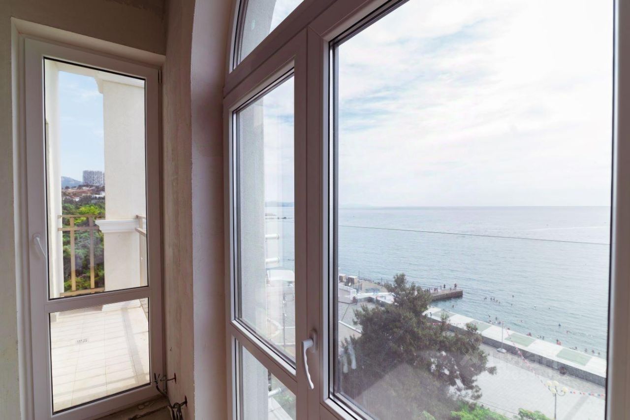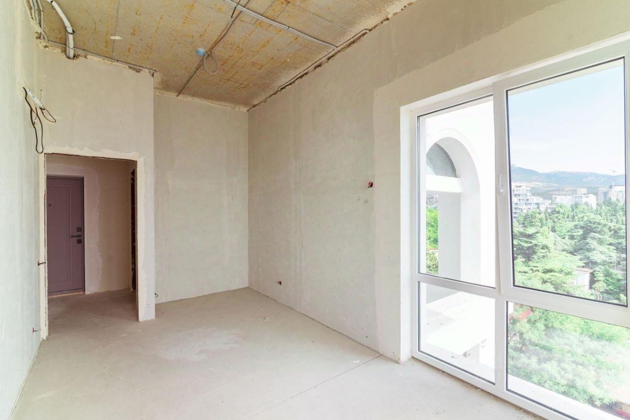 В продаже 2-комнатные апартаменты в комплексе Чайка. Общая площадь — 43,6 кв.м., расположены на 5м этаже. Из окон открывается шикарный вид на море. Апарт-комплекс находится непосредственно на центральной набережной Алушты (ул. Ленина, д.17). Сдан в эксплуатацию в октябре 2024 г. Объект клубного типа, всего 49 лотов. Чайка уникальна по своему расположению, ей нет аналогов, по-настоящему коллекционная недвижимость. Вы можете приобрести лоты площадью от 28 до 59,8 кв.м. с возможностью объединения апартаментов. Состояние под отделку, залита стяжка, оштукатурены стены, выполнена разводка коммуникаций. Высокие потолки 3.2 м. В помещениях установлено панорамное остекление, что позволяет максимально наслаждаться видами на море. Стоимость обслуживания 95 руб. / кв. м.