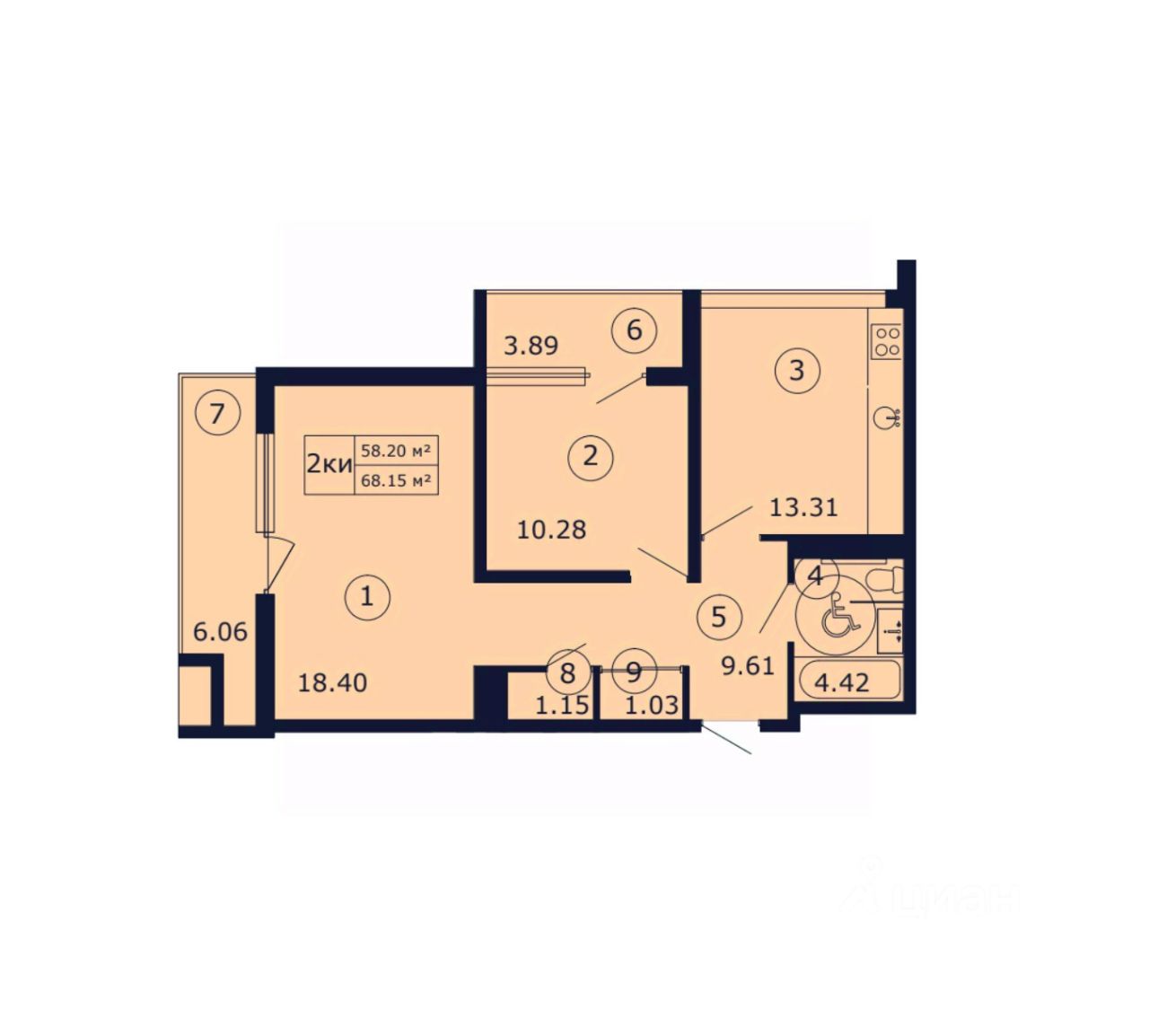 Общая площадь68,15 м2
